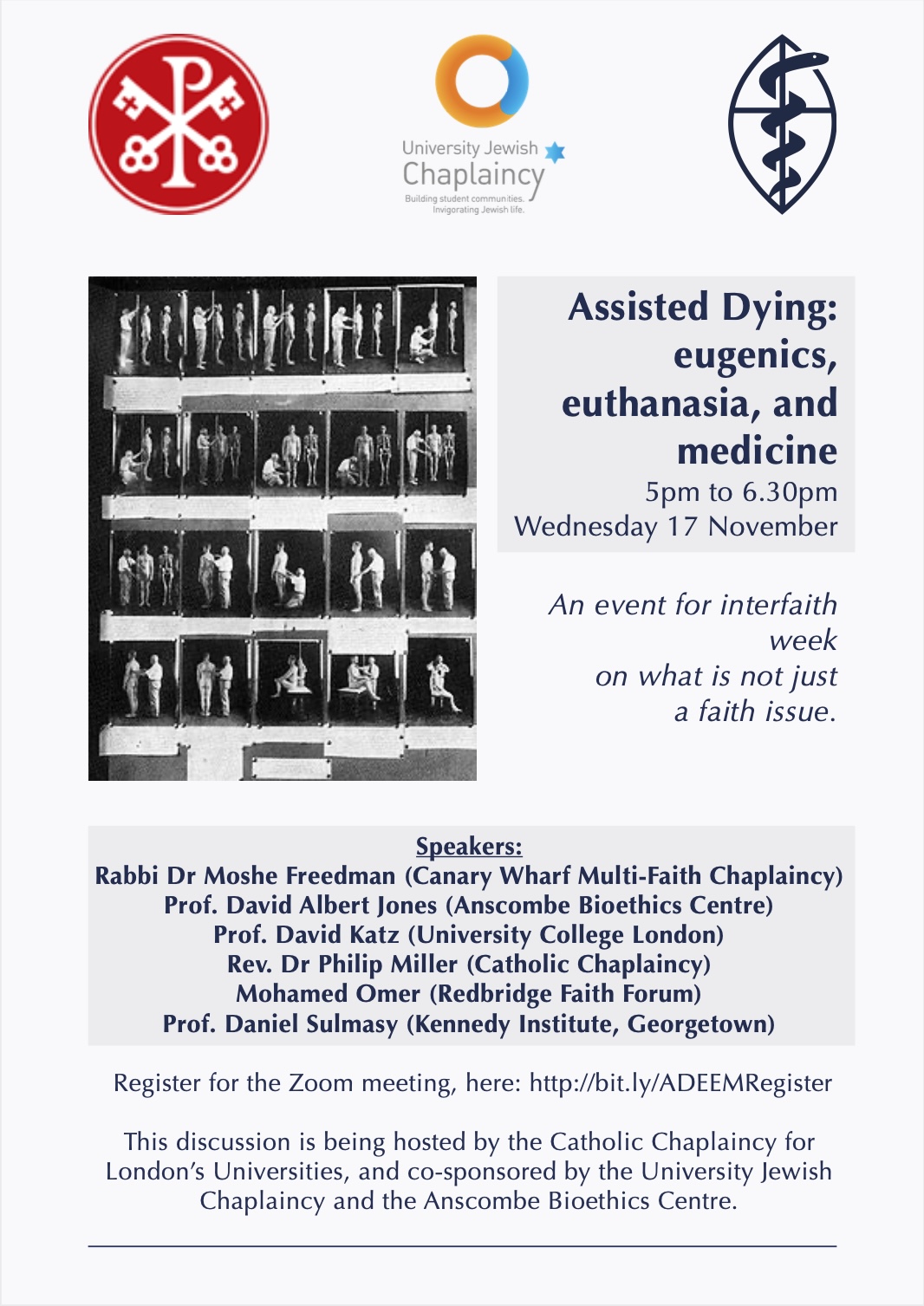 ‘Assisted Dying: eugenics, euthanasia, and medicine’ (Wednesday 17th November, 5pm-6:30pm)