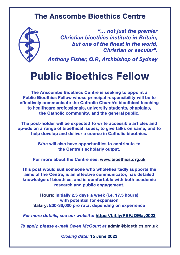 New Anscombe Job Advertisement – Public Bioethics Fellow